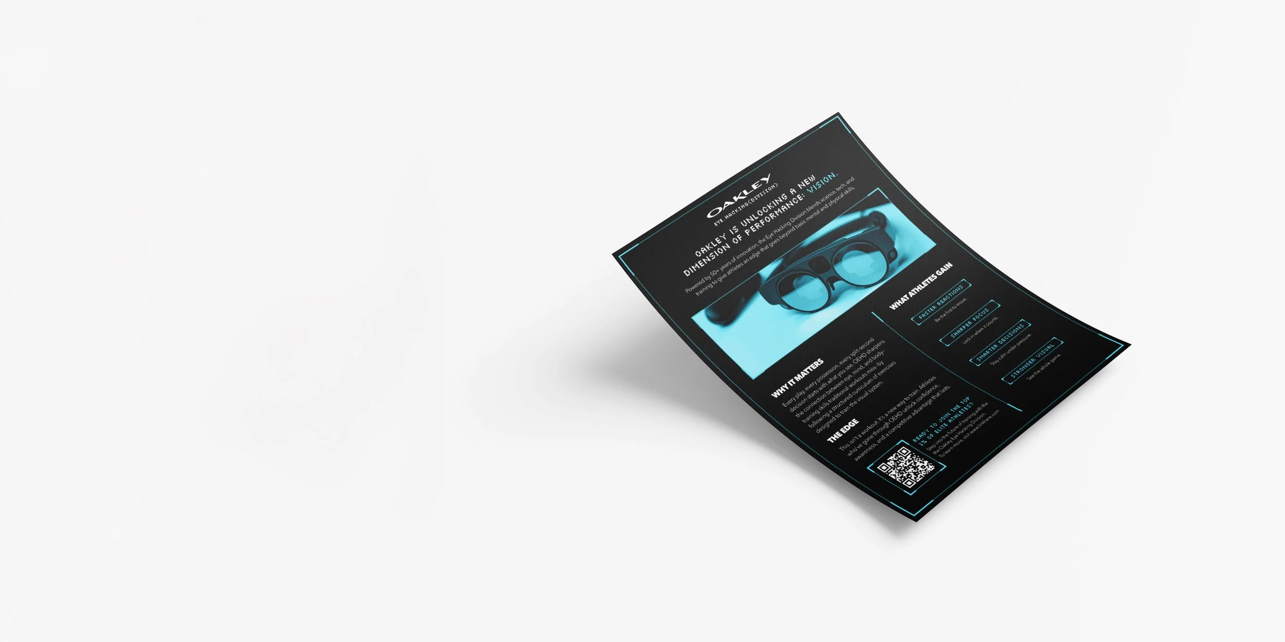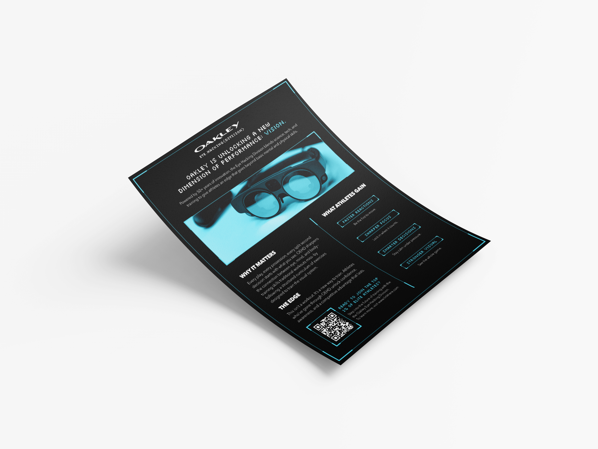 The one-pager was designed as the entry point into the Oakley Eye Hacking Division.
